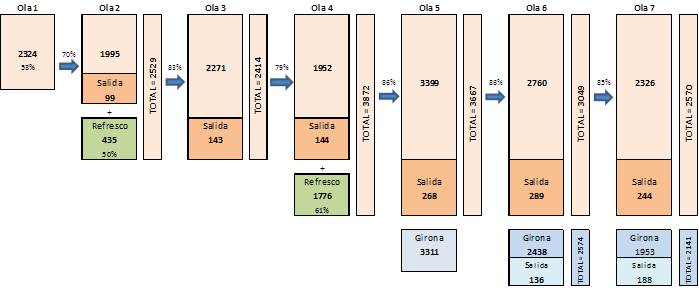 En la ola 3, se contactó de nuevo con los participantes de la ola 2 con una tasa de retención individual del 83%, es decir 2414 entrevistas.