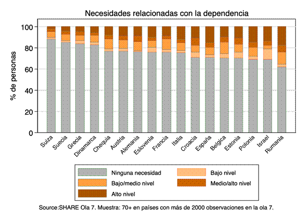 Para este gráfico hemos creado distintos leveles de dependencia basándonos sobre las variables adla e iadla de EasySHARE.